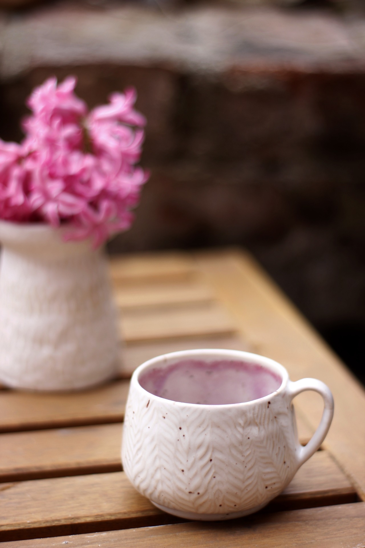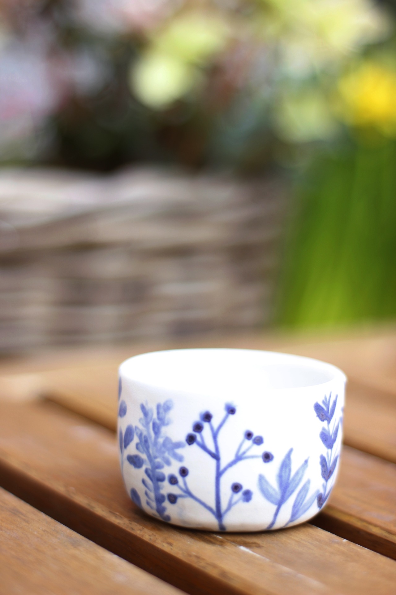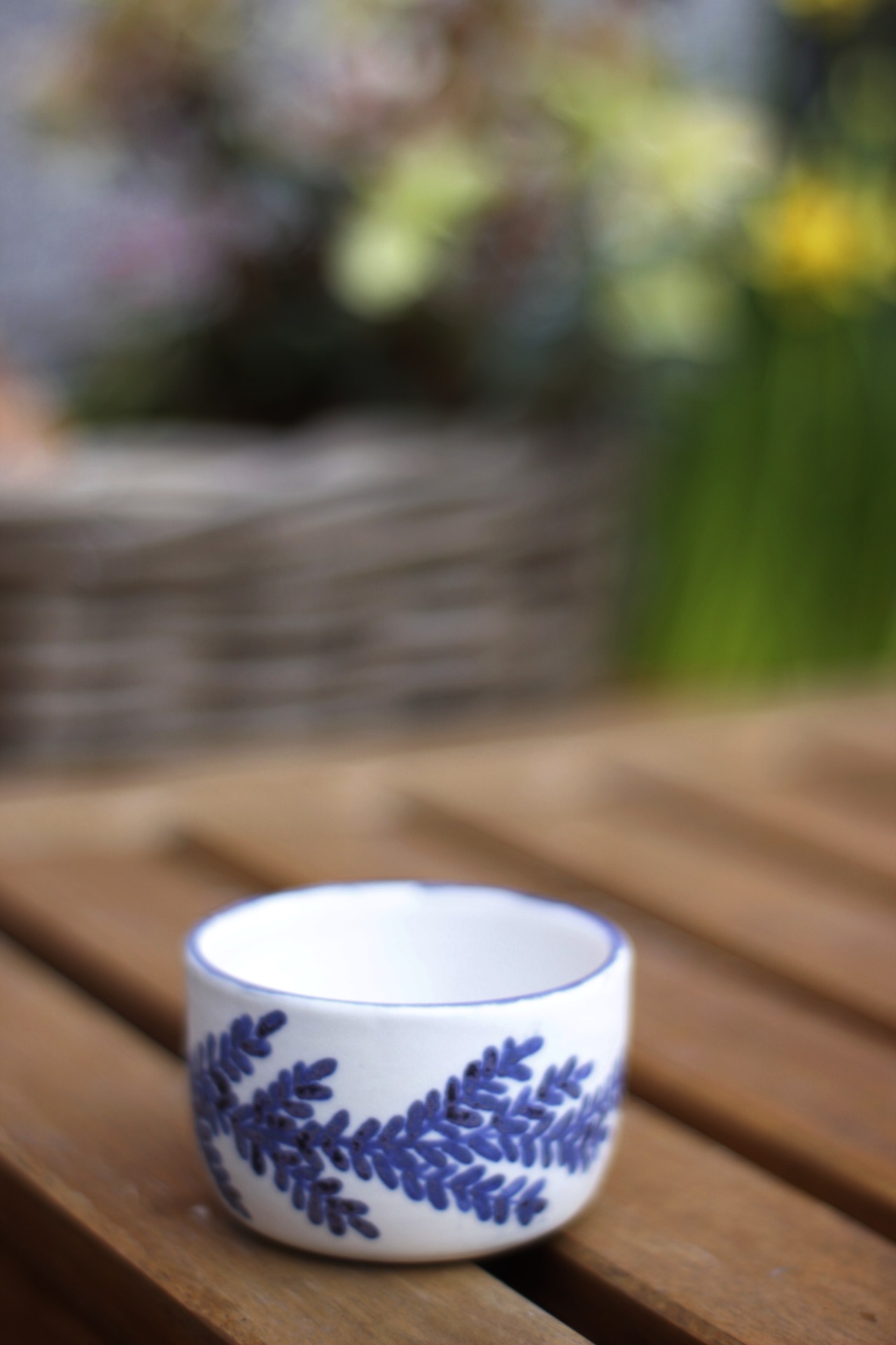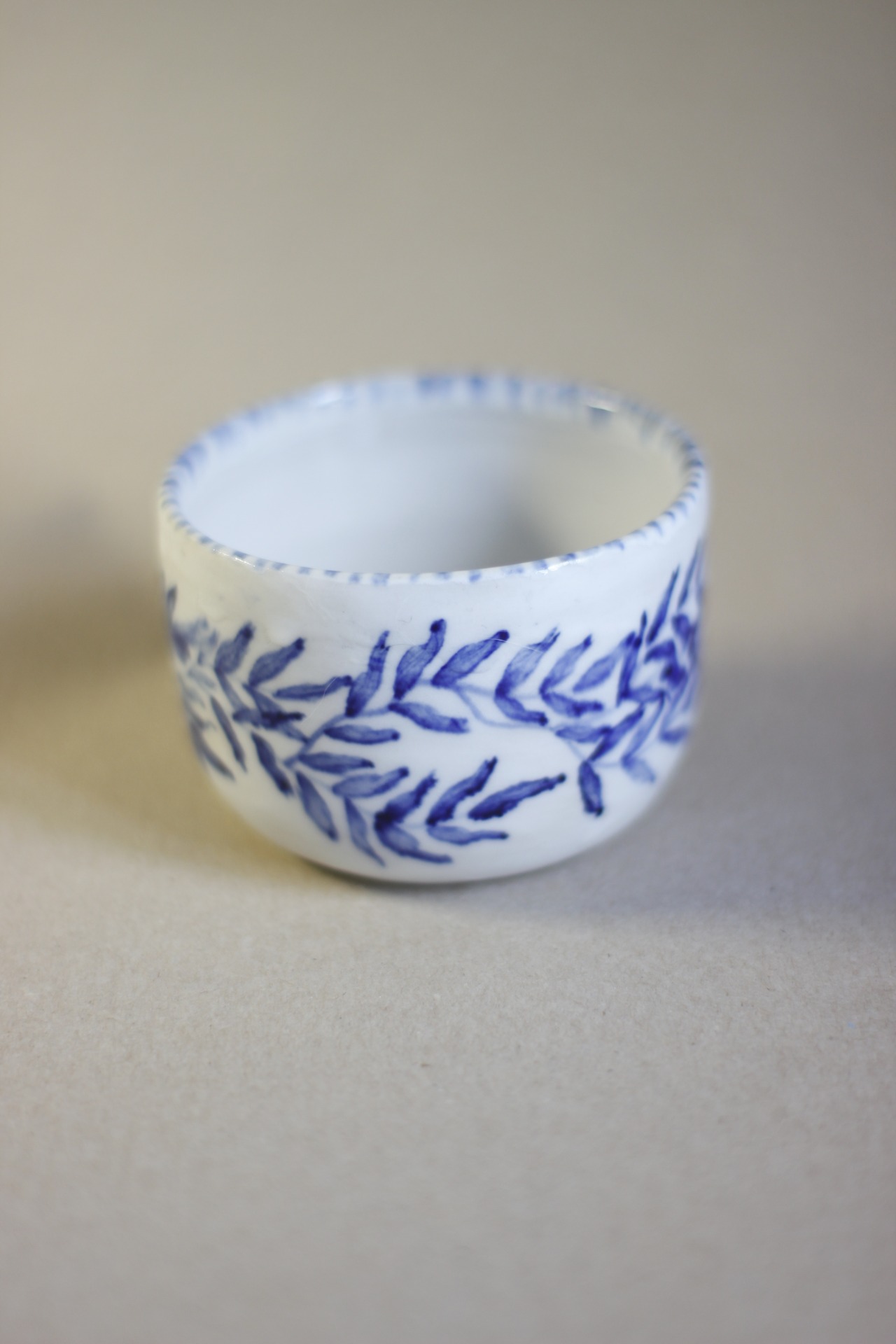Ručně točené hrnečky ze světlé hlíny . Páleno na vysokou teplotu. Zvládne sem tam myčku, ale raději má mytí v ruce. Výška 6 cm Šířka 7,5 cm Objem 140 ml