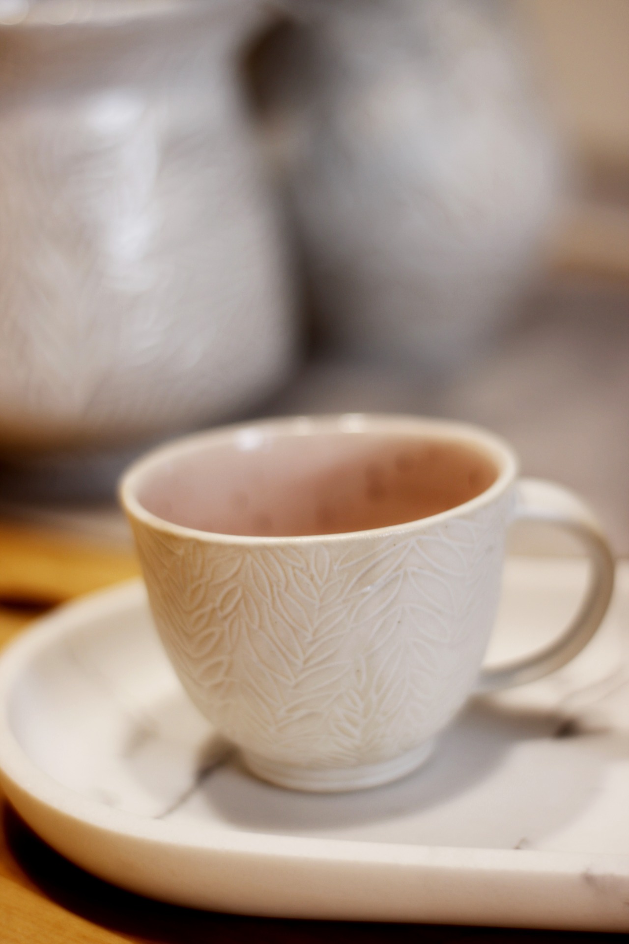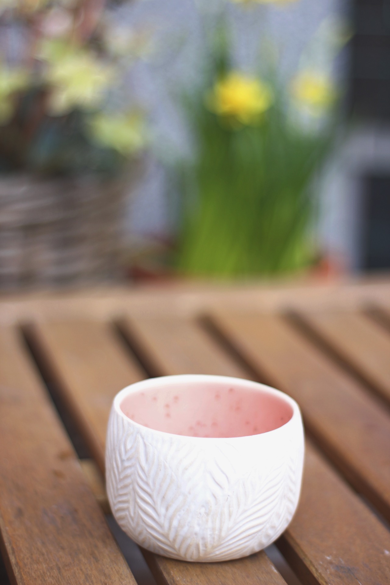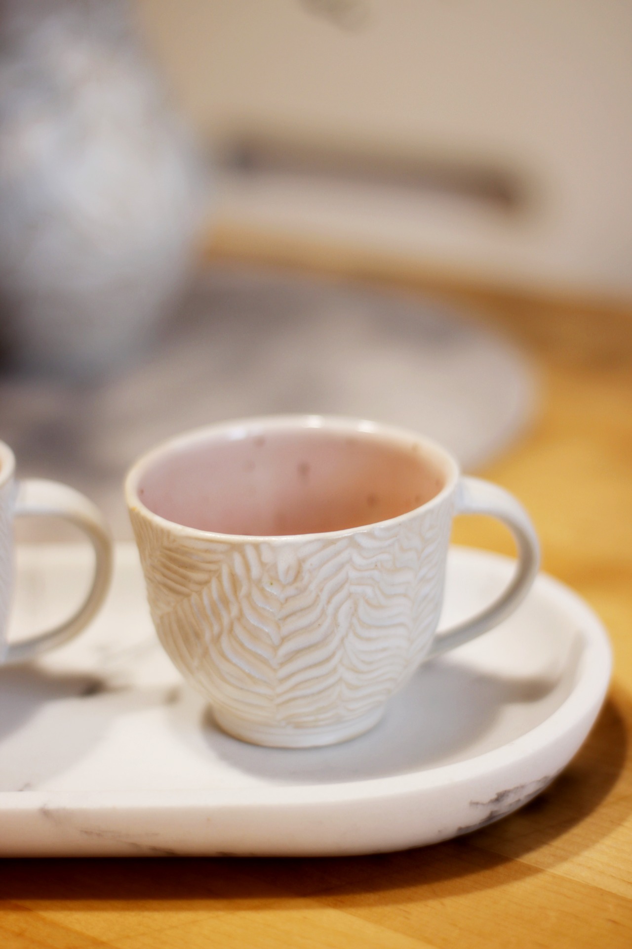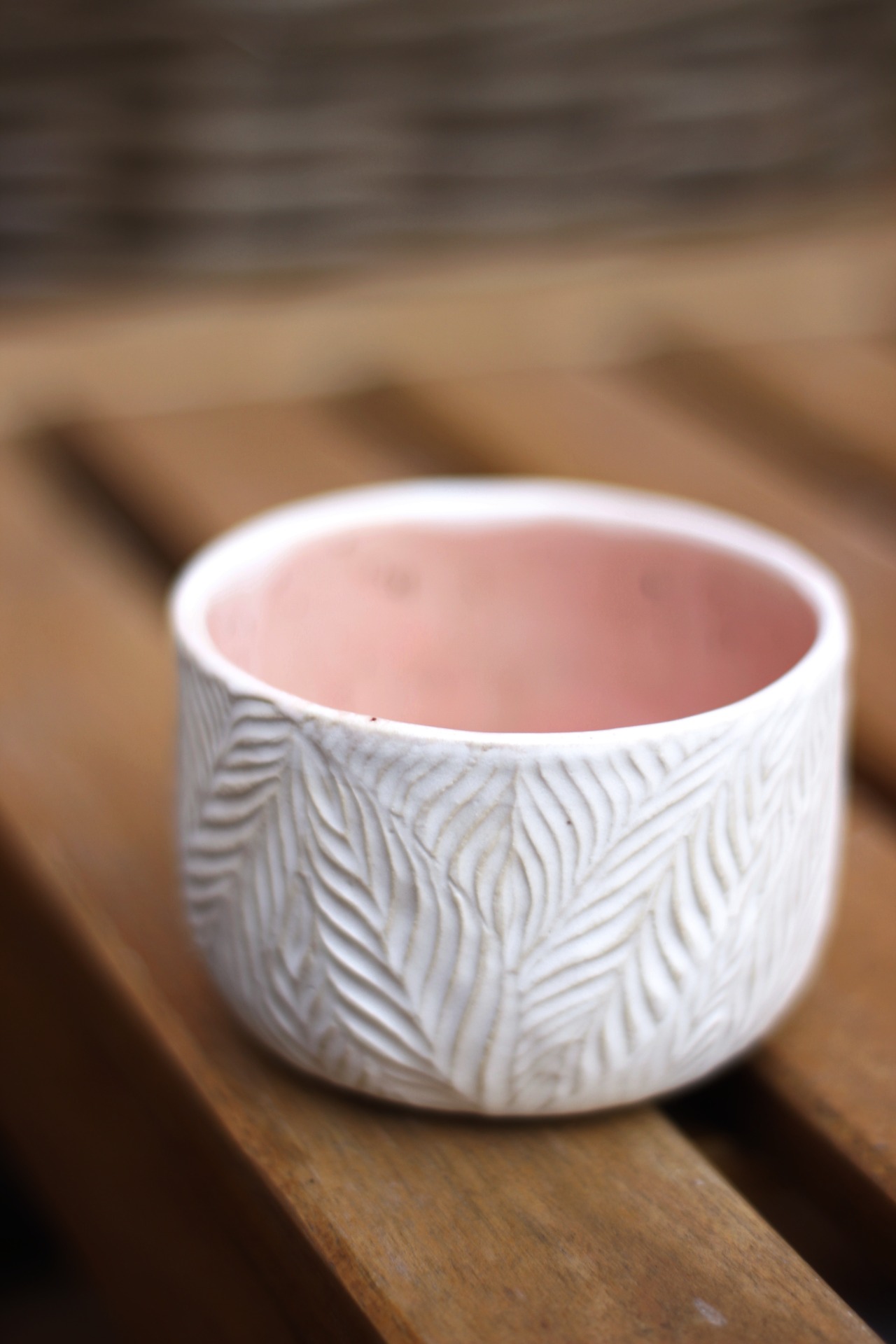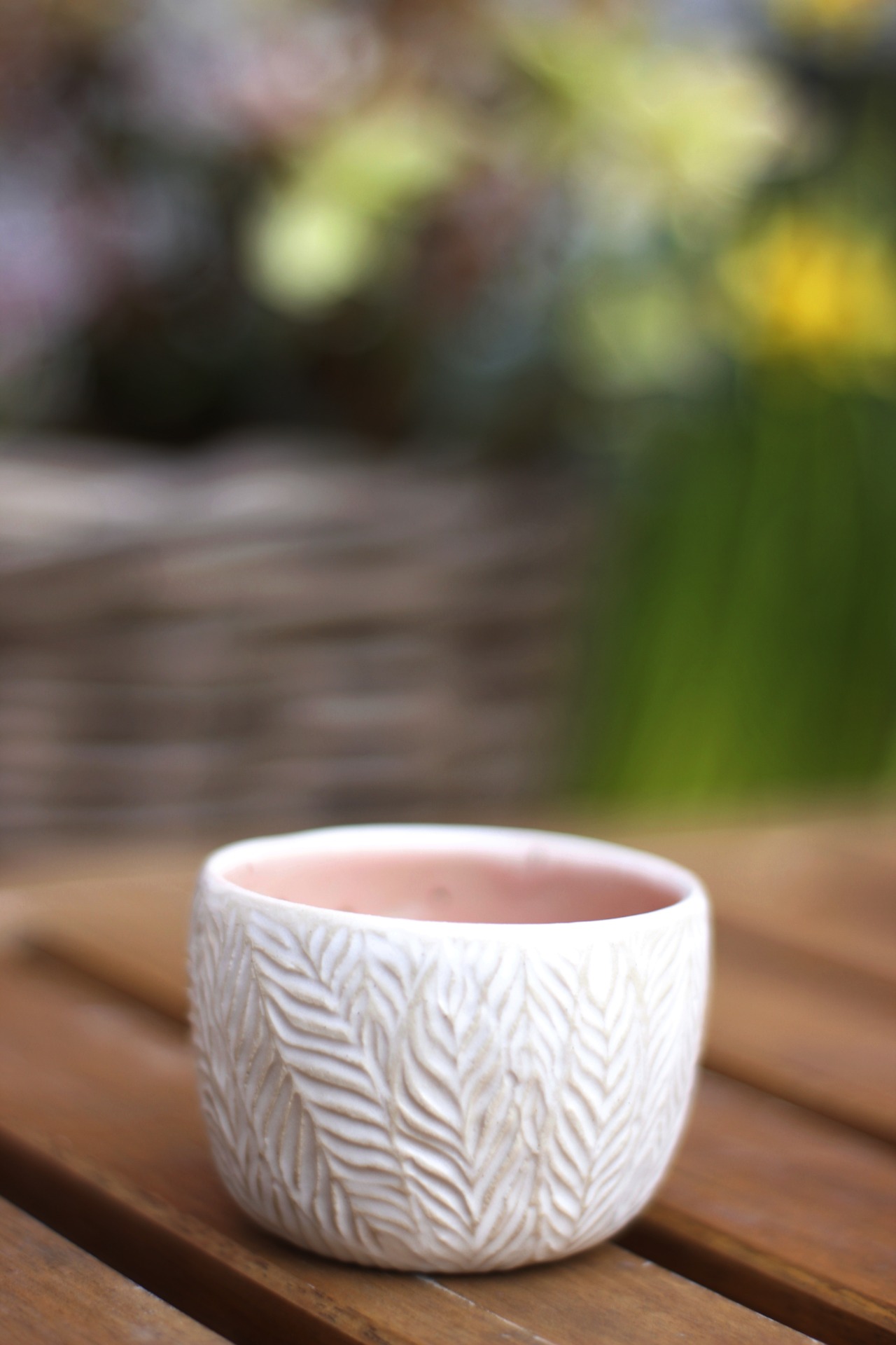 Ručně točené hrnečky ze světlé hlíny . Páleno na vysokou teplotu. Zvládne sem tam myčku, ale raději má mytí v ruce. Výška 6 cm Šířka 7,5 cm Objem 140 ml