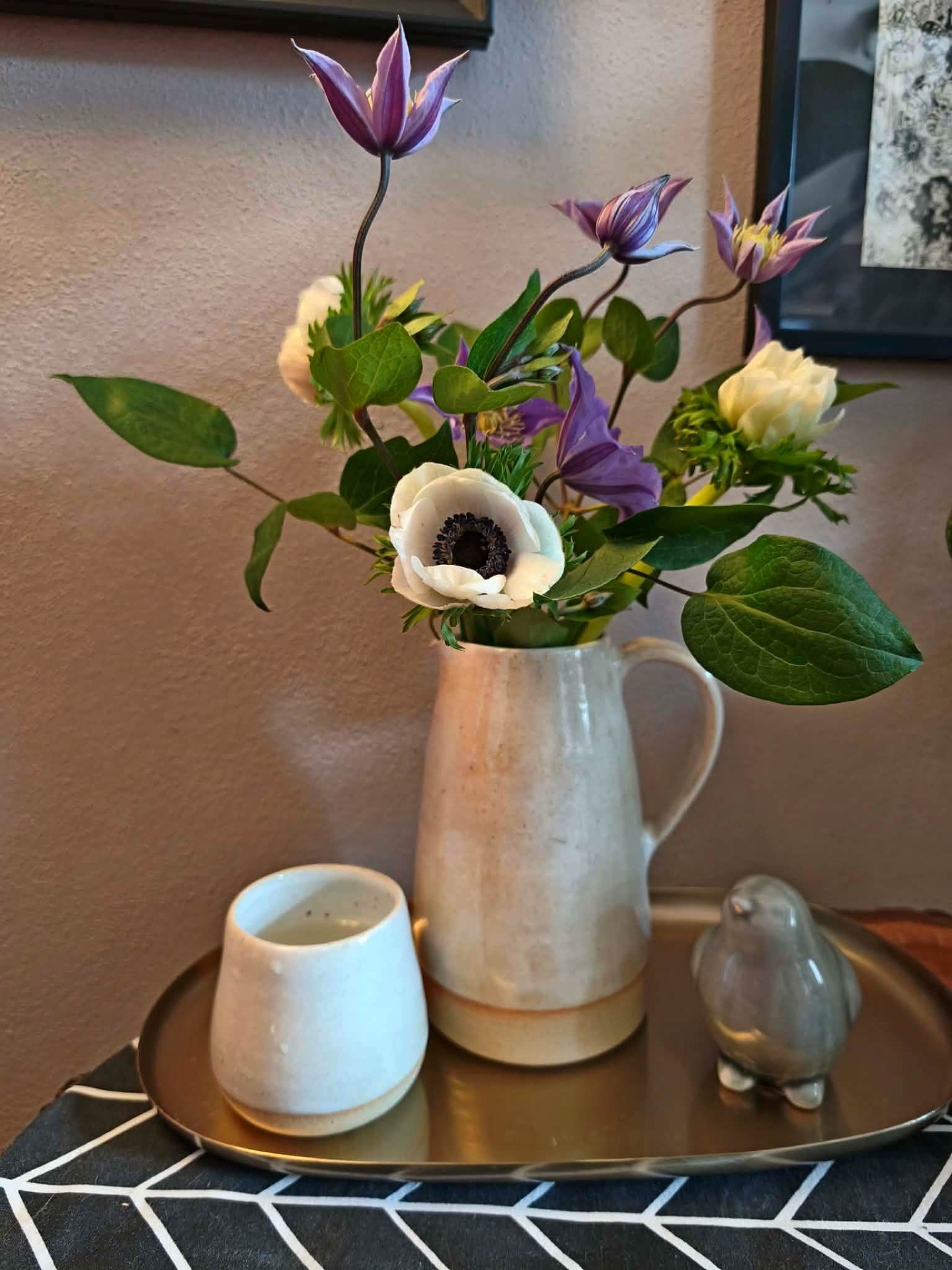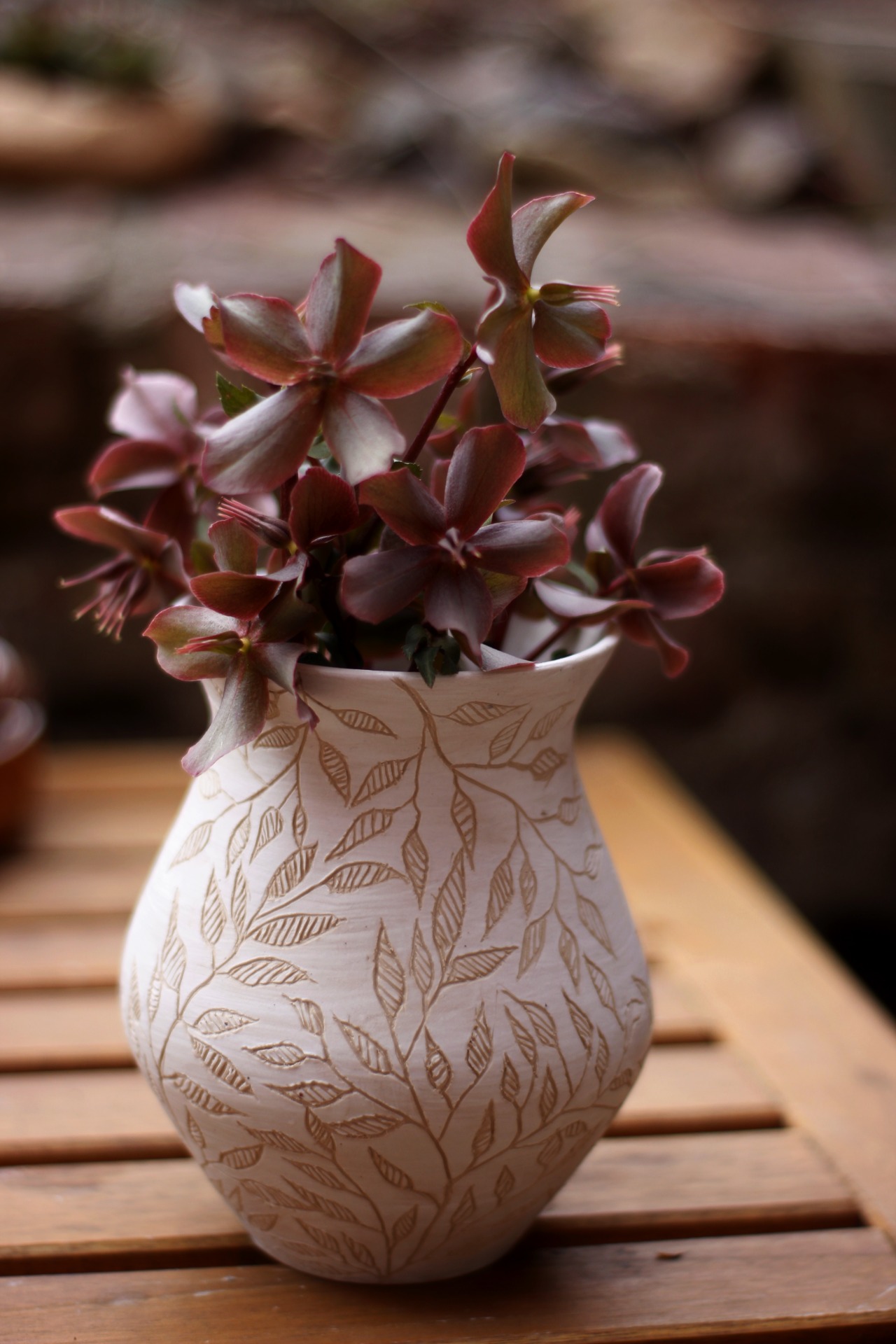 Ručně točená vázička ze světlé hlíny. Páleno na vysokou teplotu. Zvládne sem tam myčku, ale raději má mytí v ruce. Výška 15,5 cm
