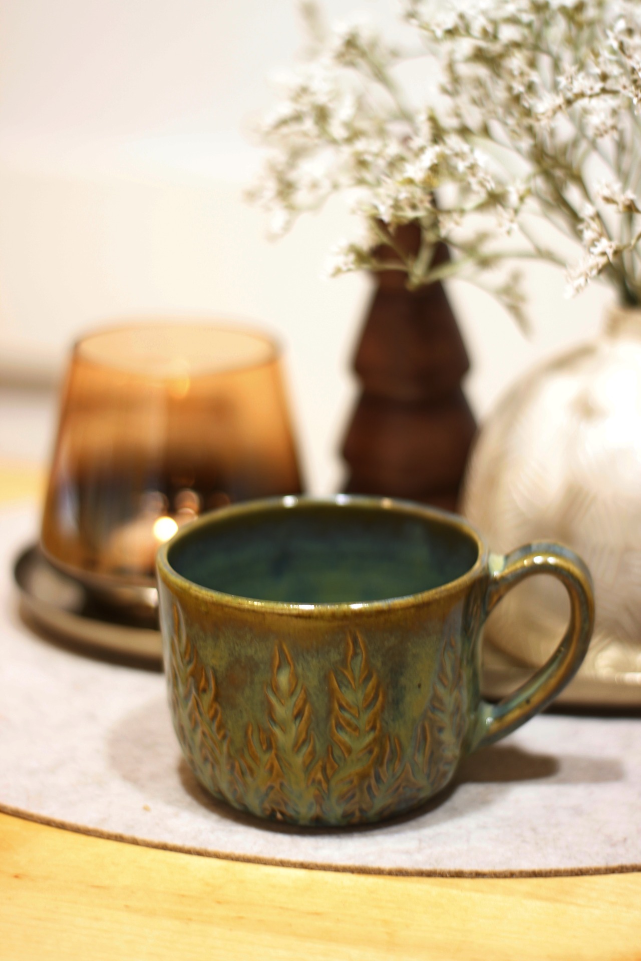 Ručně točený hrneček ze světlé hlíny s efektem kávového lógru. Páleno na vysokou teplotu. Zvládne sem tam myčku, ale raději má mytí v ruce.