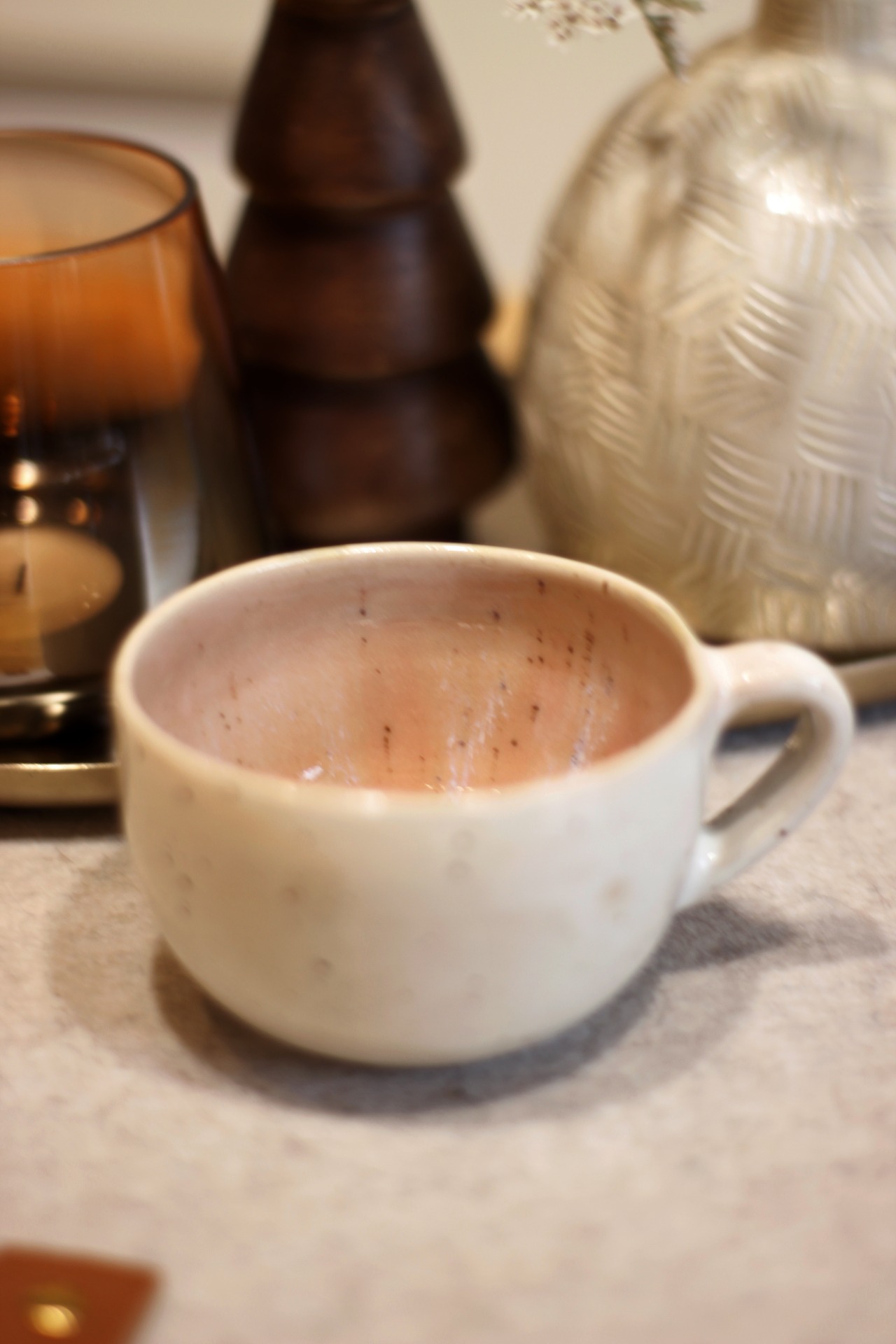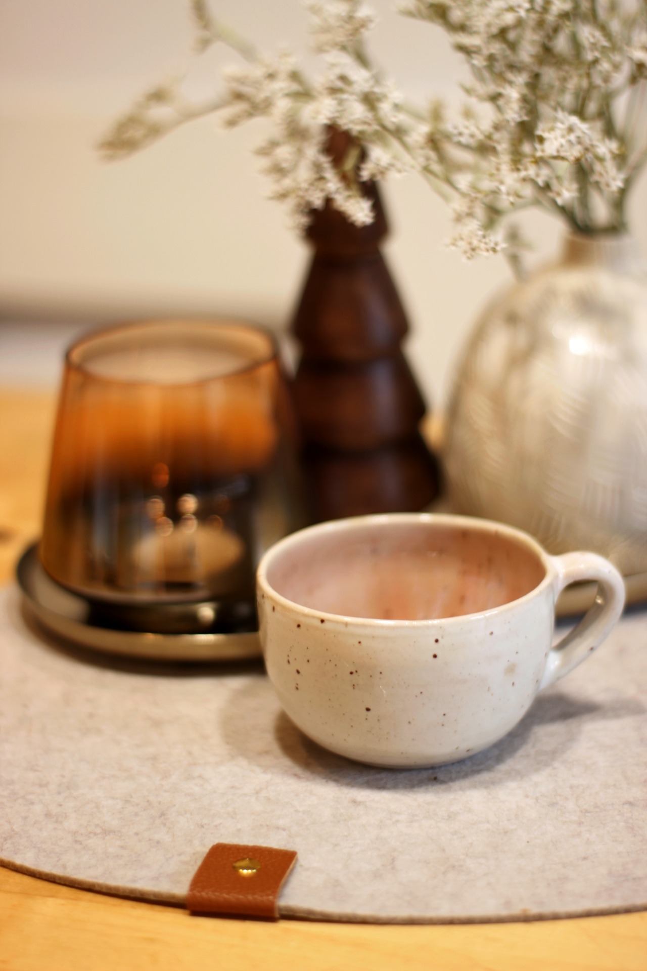Ručně točený hrneček ze světlé hlíny s efektem kávového lógru. Páleno na vysokou teplotu. Zvládne sem tam myčku, ale raději má mytí v ruce.
