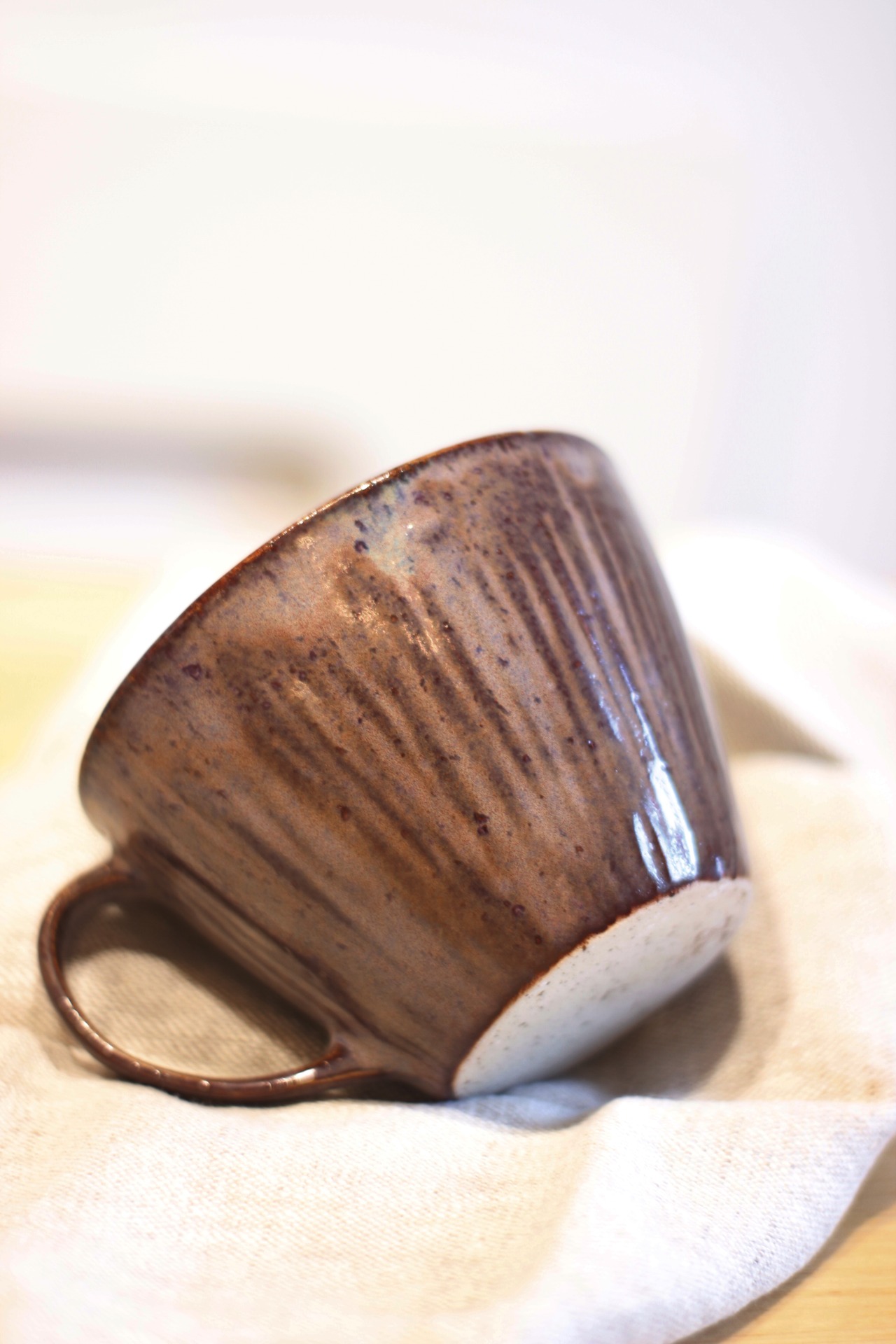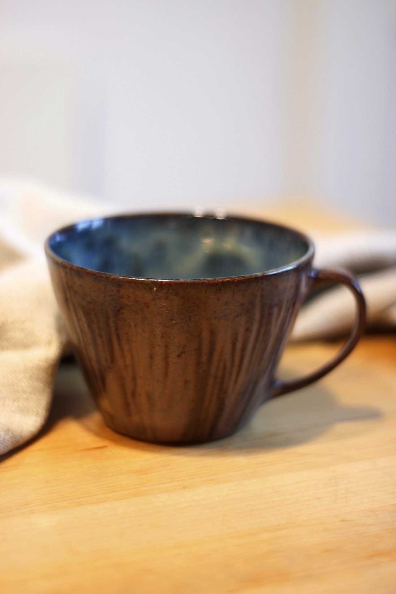 Ručně točený hrneček ze světlé hlíny . Páleno na vysokou teplotu. Zvládne sem tam myčku, ale raději má mytí v ruce.