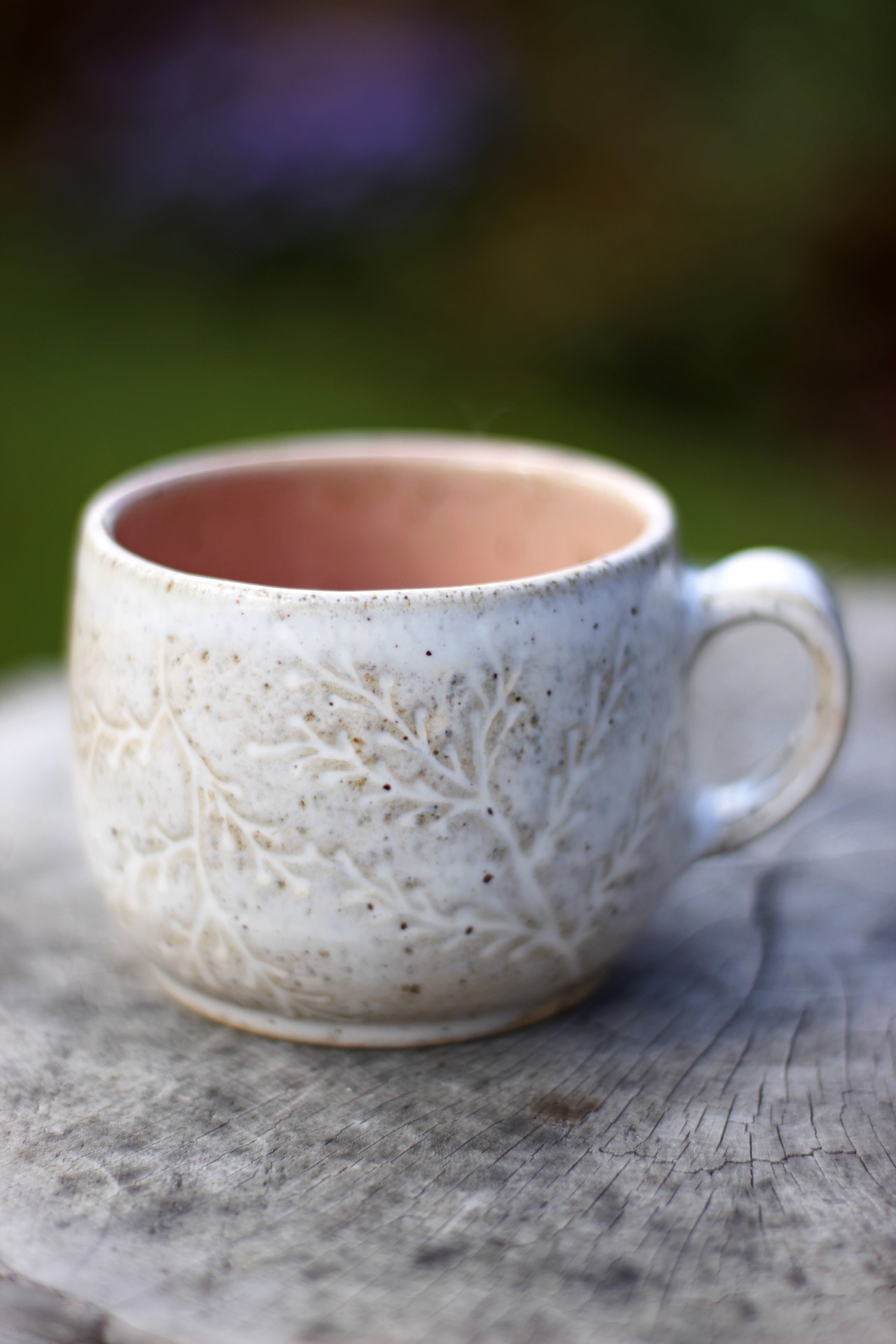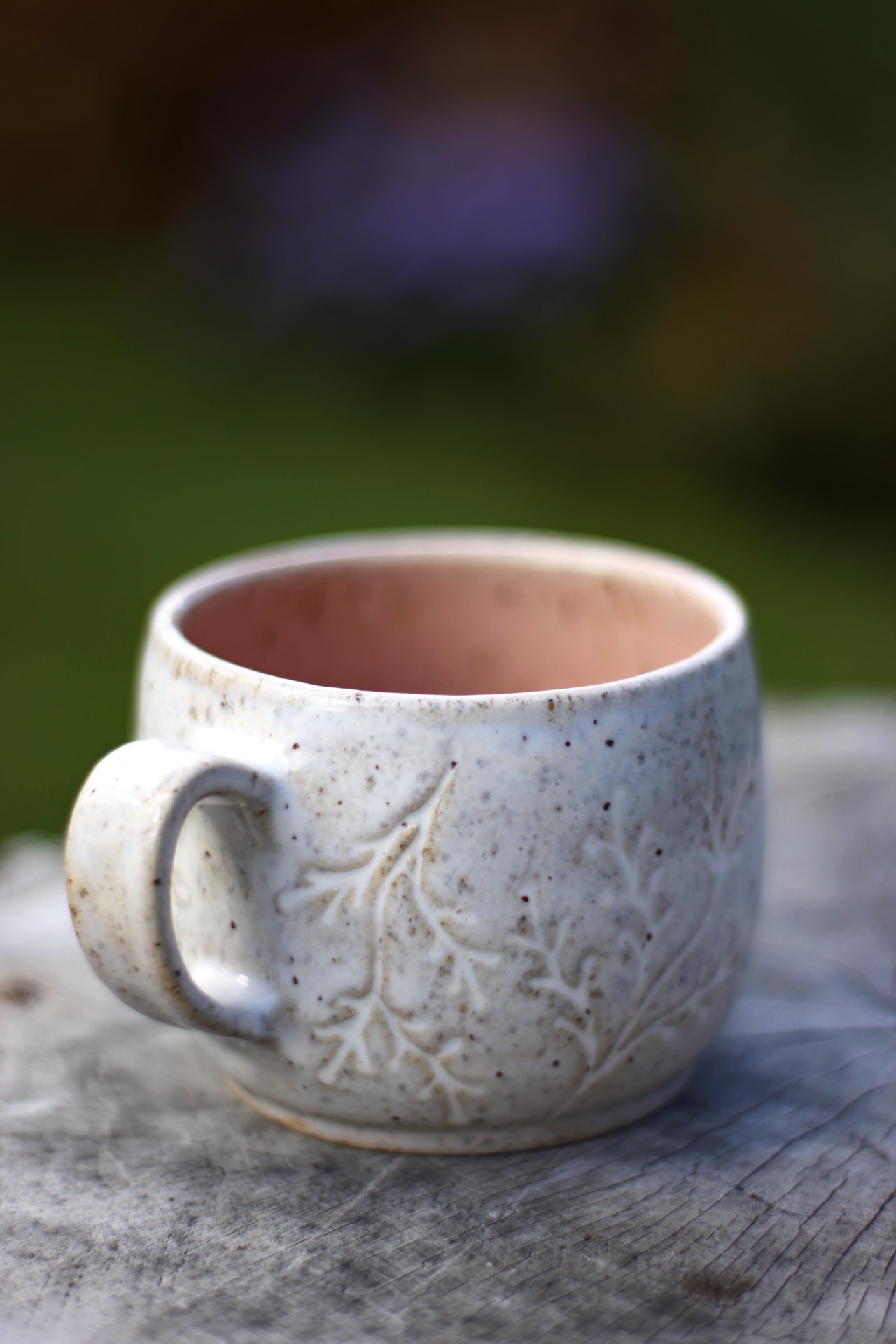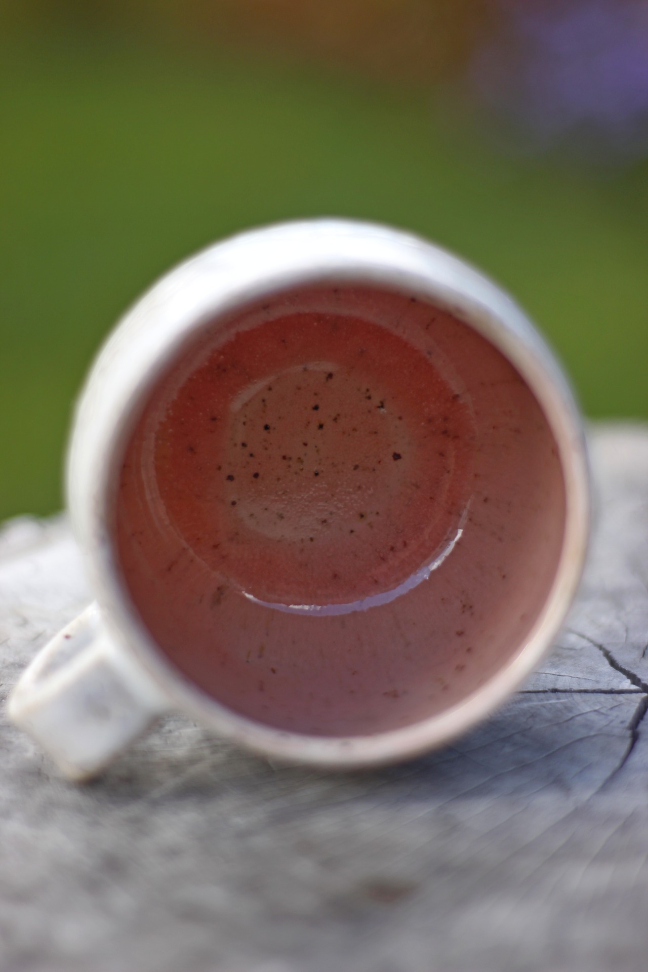Ručně točený hrneček ze světlé hlíny s efektem kávového lógru. Páleno na vysokou teplotu. Zvládne sem tam myčku, ale raději má mytí v ruce.