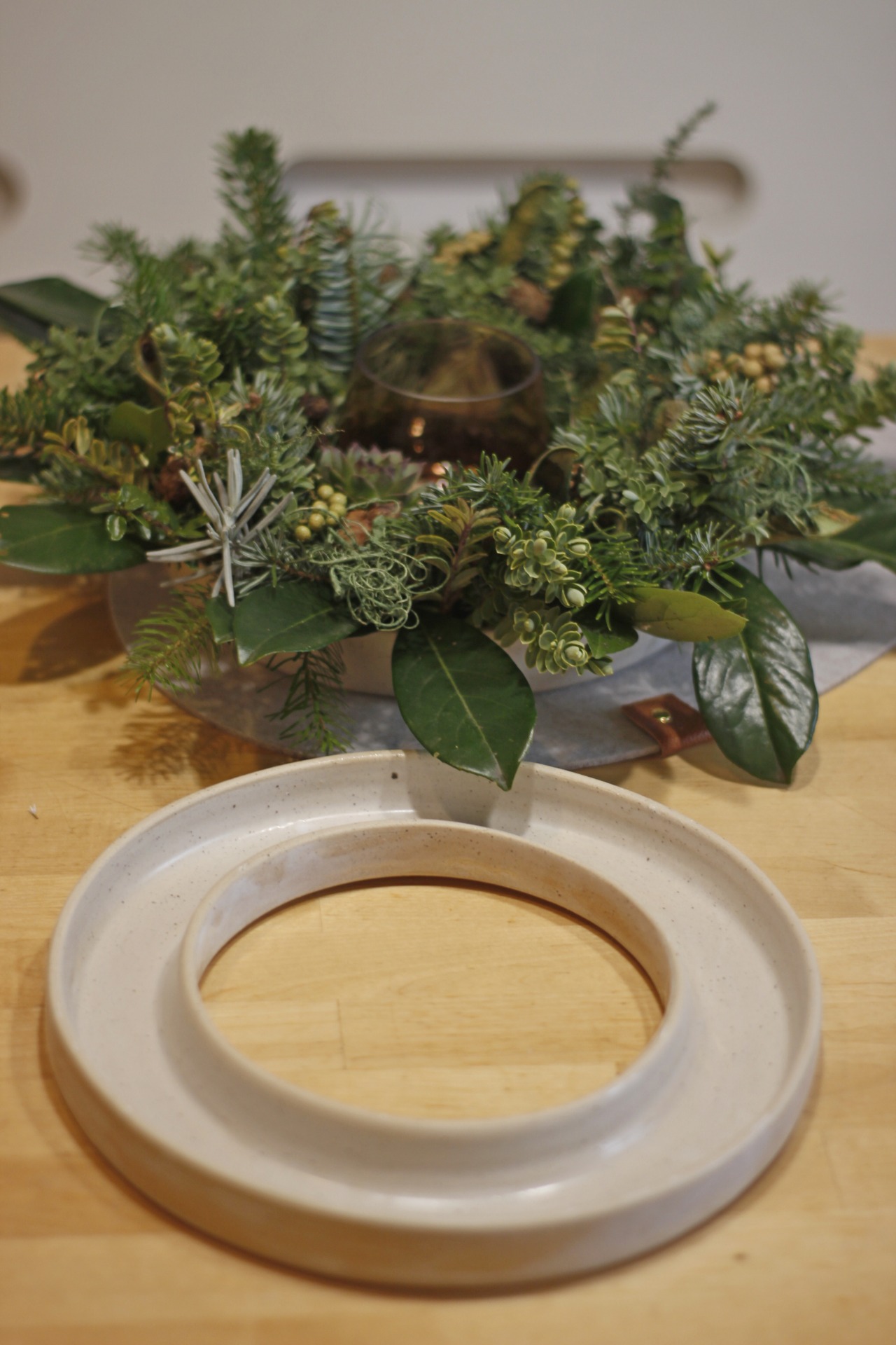 Ručně točená forma na adventní věnec ze světlé hlíny. Páleno na vysokou teplotu. Zvládne sem tam myčku, ale raději má mytí v ruce.