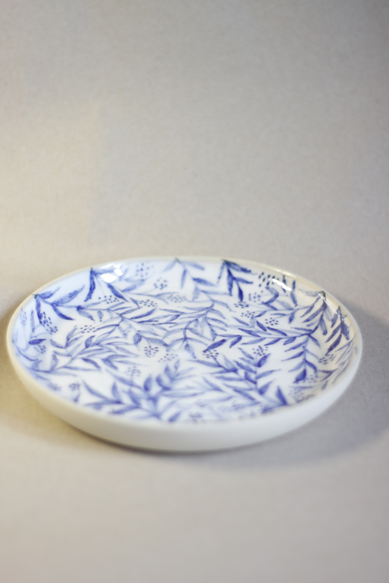 Ručně točený talířek ze světlé hlíny . Páleno na vysokou teplotu. Zvládne sem tam myčku, ale raději má mytí v ruce.