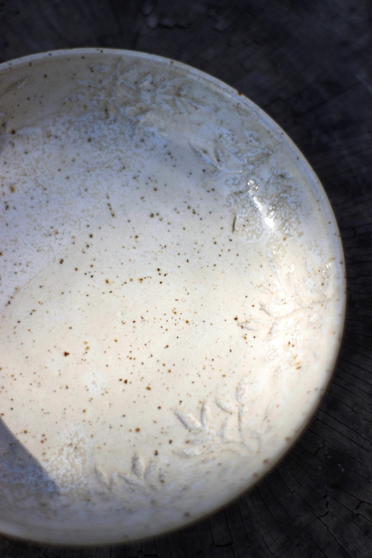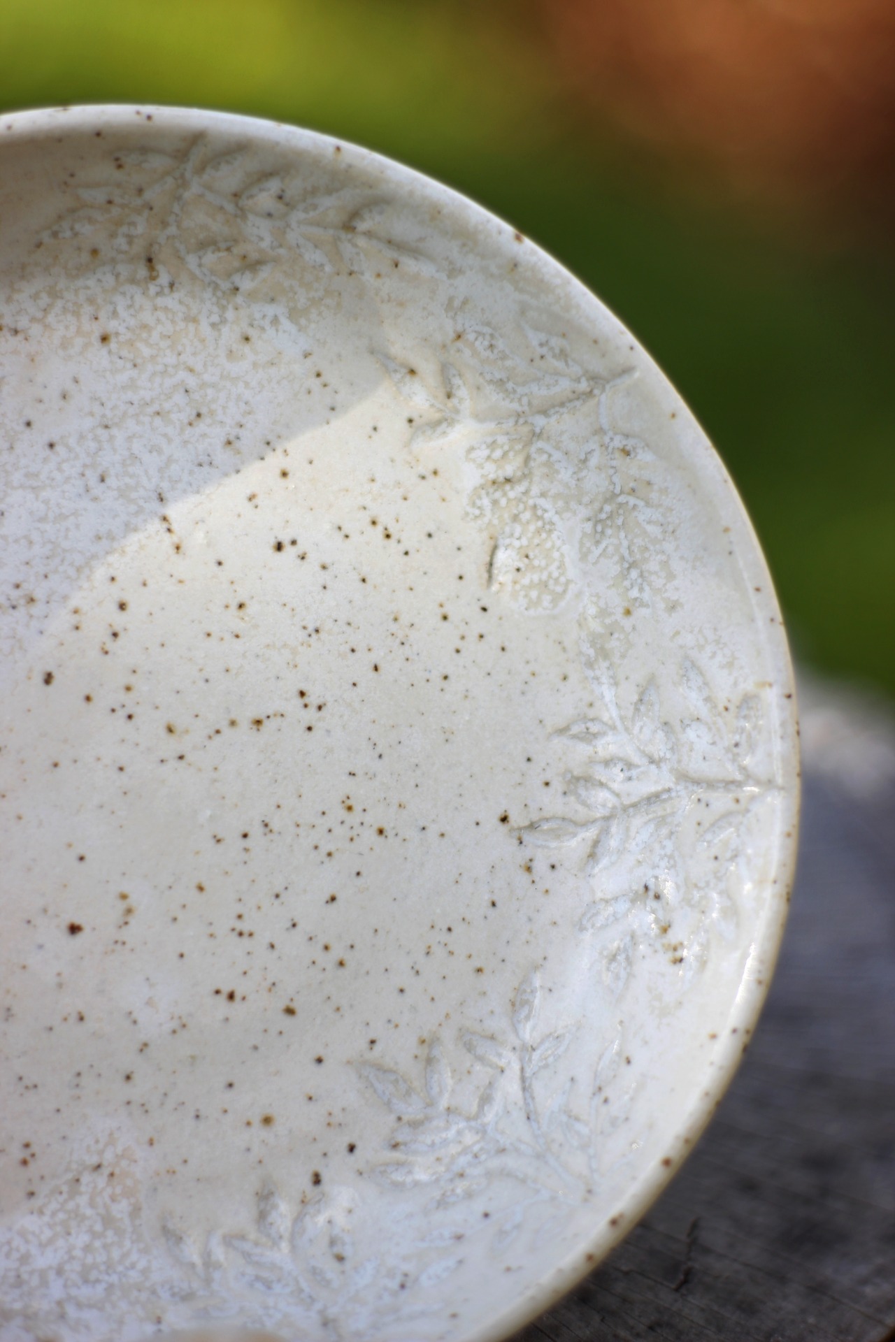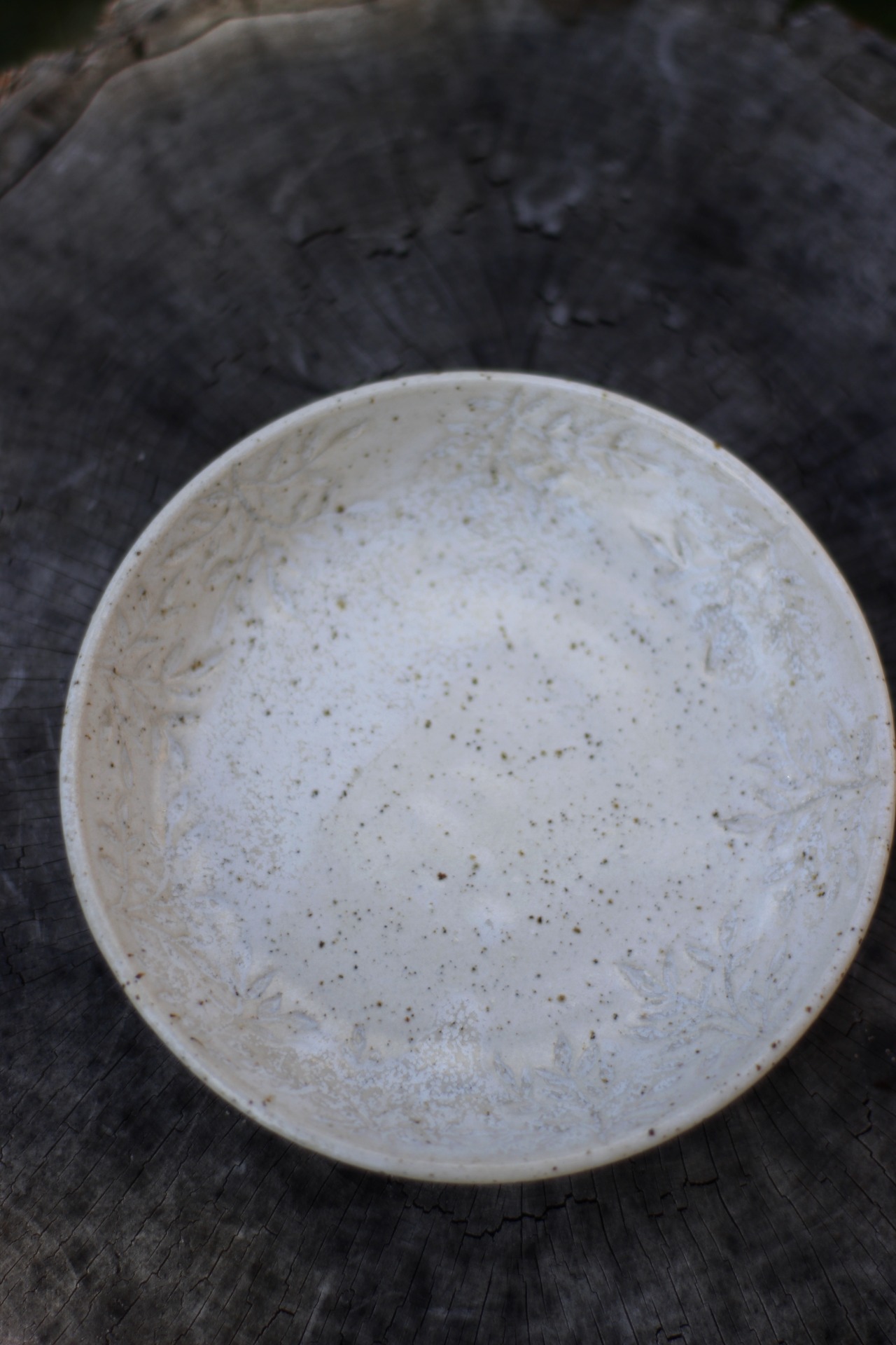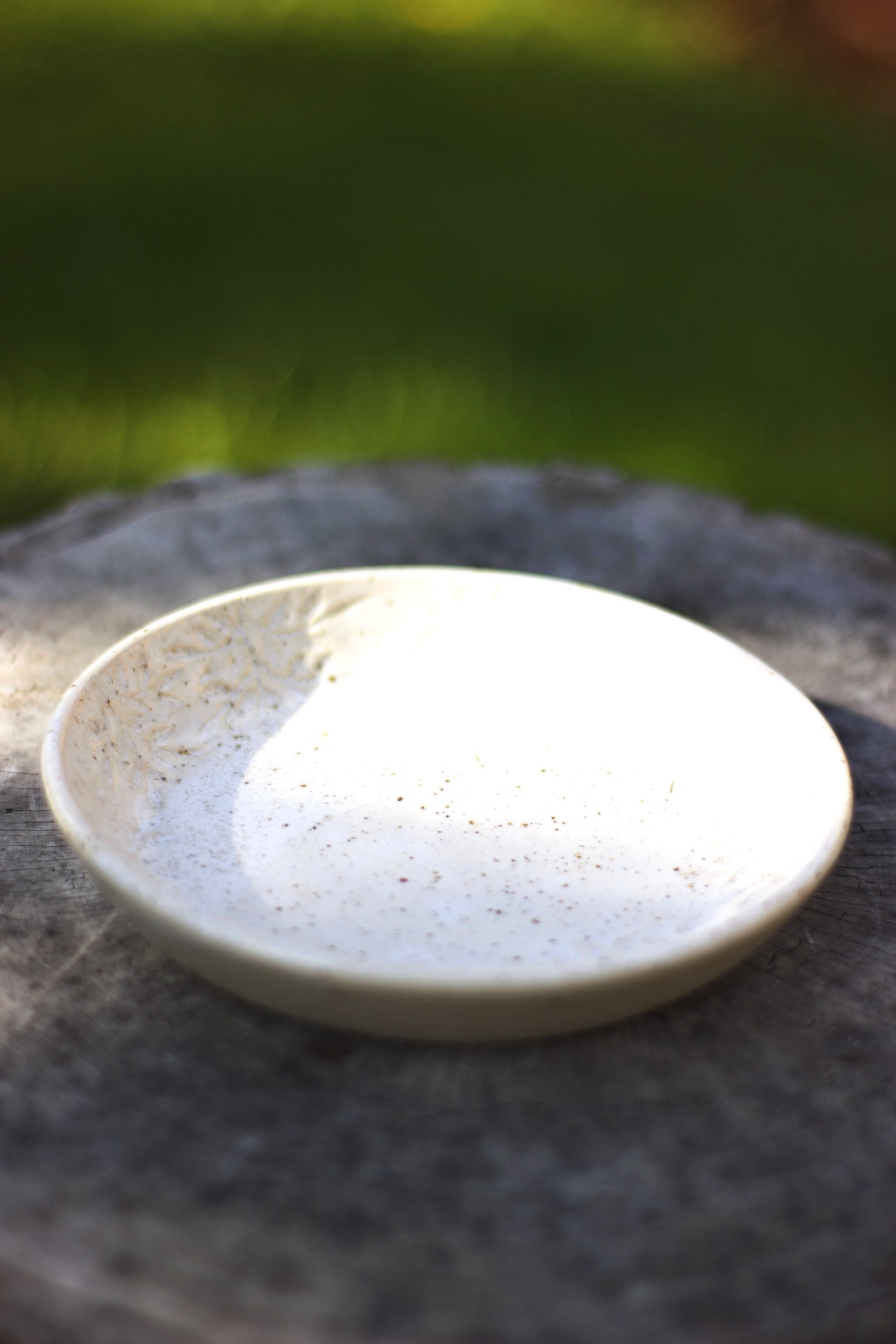 Ručně točený talířek ze světlé hlíny s efektem kávového lógru. Páleno na vysokou teplotu. Zvládne sem tam myčku, ale raději má mytí v ruce.