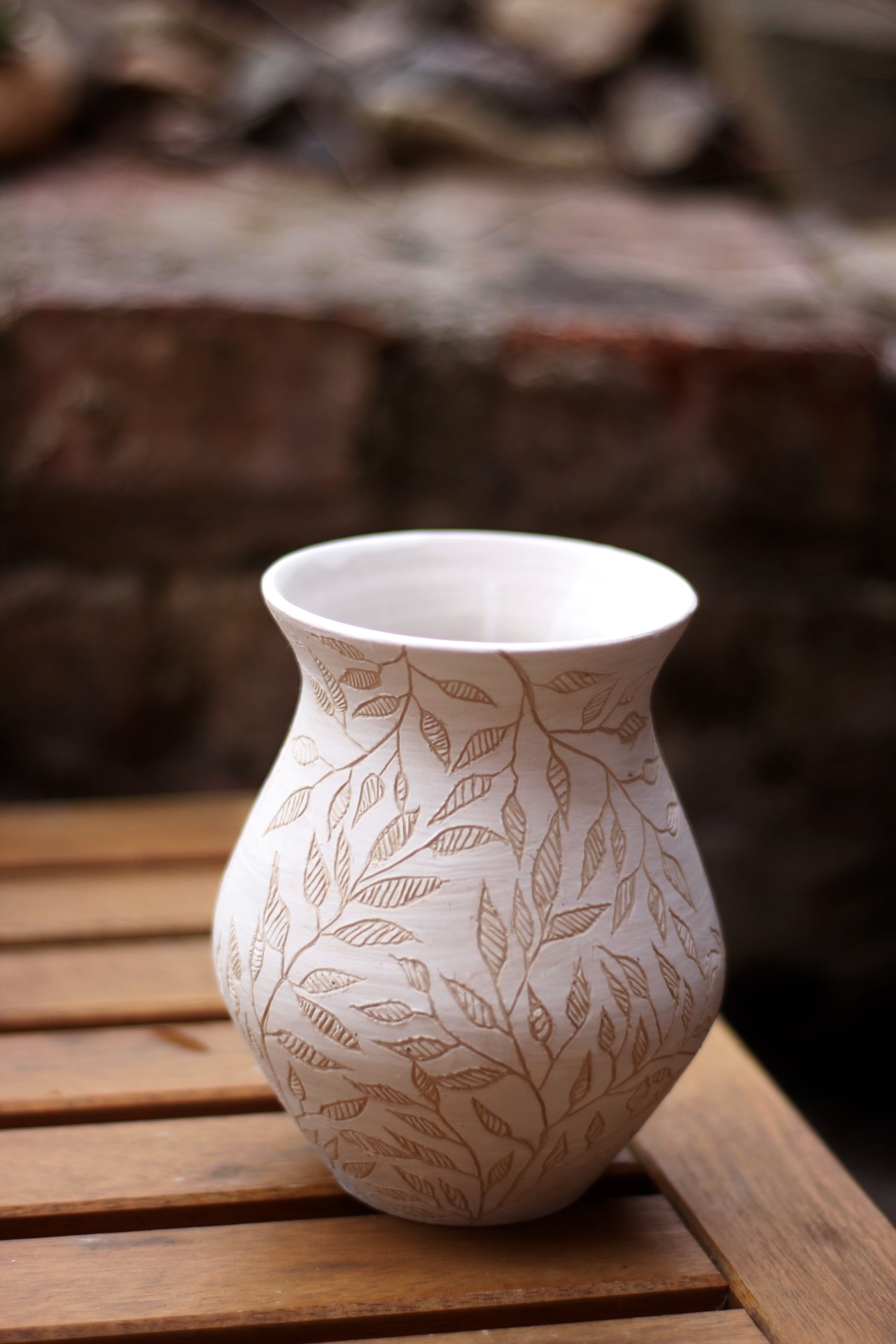 Ručně točená vázička ze světlé hlíny. Páleno na vysokou teplotu. Zvládne sem tam myčku, ale raději má mytí v ruce.
